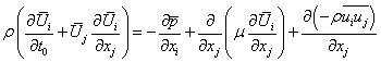 与动量方程类似,对流项的时间平均值、压力项、分子项都是基于平均流动,根据雷诺应力张力得到最后一项附加项,该点的雷诺应力张量未知,因为这是湍流对平均流动的影响。
