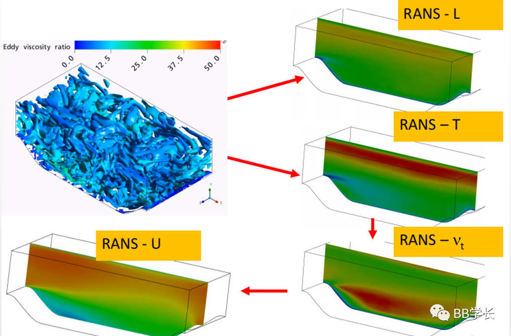 在这些流动中,湍流由Navier-Stokes方程控制,因此原则上我们可以对其进行求解,但是需要求解所有尺度,从耗散到Kolmogorov尺度到平均流动尺度,会导致数值仿真成本太高,不适用于工业应用。