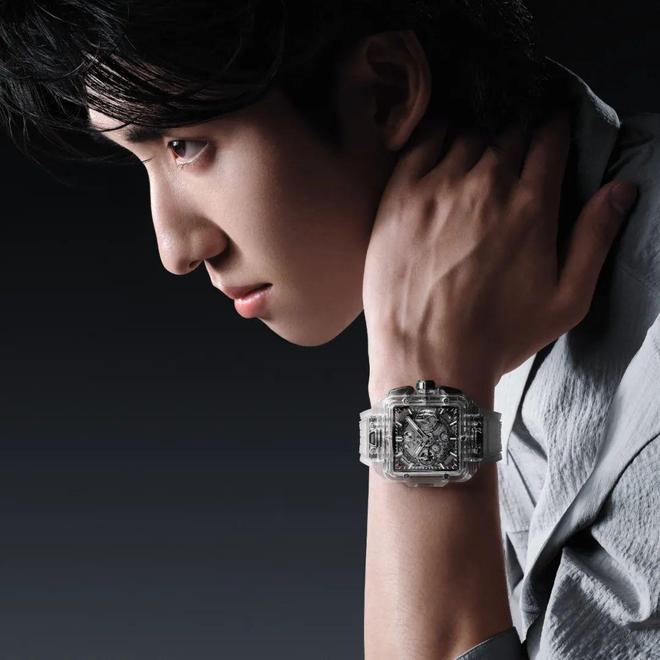 其中,Big Bang系列20周年纪念版全黑款是宇舶表开创性设计理念的代表作之一,其拥有的迷人而低调的魅力与林孝埈的个人气质颇为契合;Square Bang Unico蓝宝石腕表则是林孝埈的个人最爱,这款以透明蓝宝石材质打造的方形腕表,在他的腕间有了新的诠释:令人联想到纯净无暇的冰面。透过蓝宝石表壳而完全可见的机芯精密运作,则映射着在冰上竞速所需的精准细节。