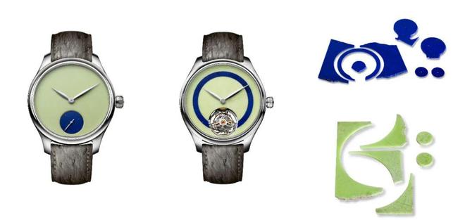 勇创者系列小三针概念版Pop腕表与勇创者系列陀飞轮概念版Pop腕表(青金石和柠檬绿玉髓表盘)