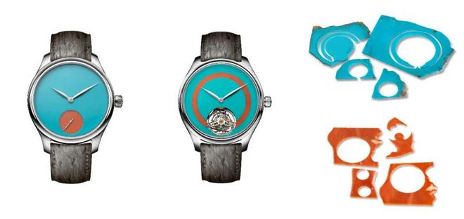 勇创者系列小三针概念版Pop腕表与勇创者系列陀飞轮概念版Pop腕表(绿松石和珊瑚表盘)
