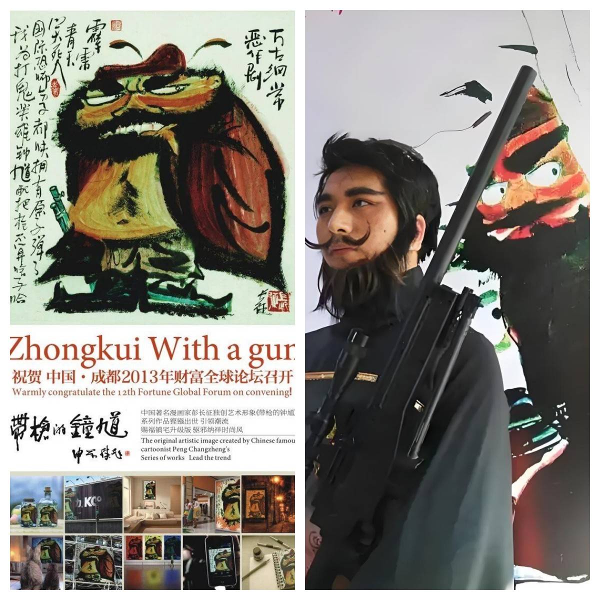 2015年,美国《》曾发表题为《抗战过去70年,中日关系仍受余波》的评论员文章,将《带枪钟馗》作品放到中美日的国际关系中解读: