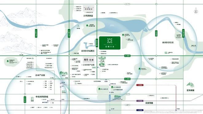 值得一提的是,作为“职住平衡”的黄金阵地,朱辛庄板块的生态资源极其丰富,项目近距昌平新城滨河森林公园、翠明湖,毗邻约1339亩未来科学城生态休闲公园(建设中)。在未来科学城“两区一心”的空间格局规划下,位处生态绿心的星耀未来极具诗意与人情味,蓝绿交织、水城共融,独属于项目的耀奢格局已然扎根。